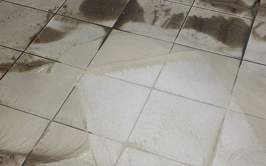 Obwohl die Oberflächen regelmäßig gewischt werden, hat sich im Laufe der Zeit ein Plaque aus Allgemeinverschmutzungen, Kalk und Reinigungsmittelrückständen gebildet. Diese Schicht war mit haushaltsüblichen Mitteln nicht mehr entfernbar.