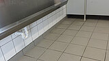 Im Rahmen einer Grundreinigung kam Lithofin KF Intensivreiniger zum Einsatz, um bestehende Pflegemittelrückstände zu entfernen. Anschließend wurde der gesamte Belag mit Lithofin MN Zementschleier- und Rostentferner abgesäuert – so wurden auch Kalkrückstände und Urinstein restlos entfernt.