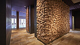 Der Bodenbelag des Foyers wurde mit dem aus Deutschland stammenden Kalkstein Anröchter Grün gestaltet. Die grau-grüne Farbgebung verleiht dem Eingangsbereich einen Hauch puristischer Eleganz. Um das Material wirksam vor Wasser-, Öl- und Fettflecken zu schützen wurde auf der Fläche von ca. 1.000 m² Lithofin FLECKSTOP >W< verarbeitet. Die wasserbasierende Imprägnierung schützt saugfähige Keramik-, Natur- und Betonwerksteinbeläge gegen Flecken. Nebenbei erleichtert sie die weitere Unterhaltspflege.
