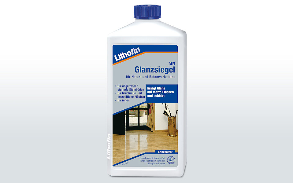Zuerst Verschmutzungen und Pflegemittelrückstände mit Lithofin MN Grundreiniger entfernen. Danach den Boden mit Lithofin MN Glanzpflege wischen. (Bei bereits starker Abnutzung: Lithofin MN Glanzsiegel ca. 1:4 mit Wasser verdünnt auftragen).