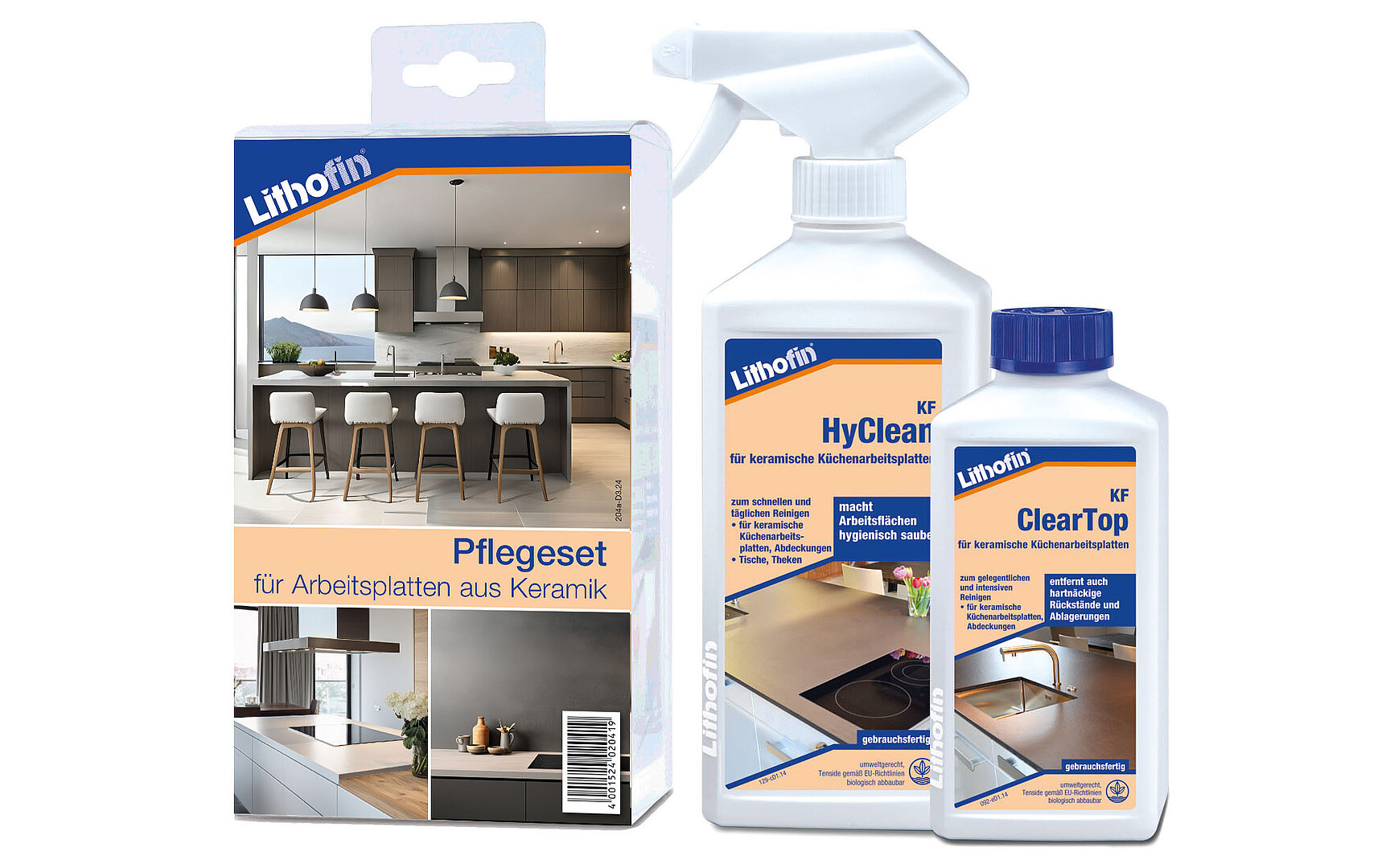 Das Lithofin Pflege-Set enthält die erforderlichen Produkte für keramische Oberflächen.