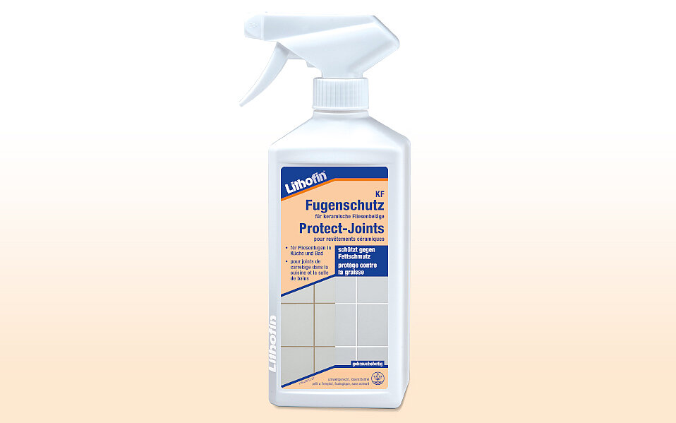 Um diesen Verschmutzungen entgegen zu wirken und auch die Reinigung zu erleichtern, empfehlen wir die Fuge mit Lithofin KF Fugenschutz zu behandeln. Die Imprägnierung baut eine nachhaltige Fett- und Ölabweisung auf, so dass das Eindringen dieser Substanzen deutlich erschwert wird.