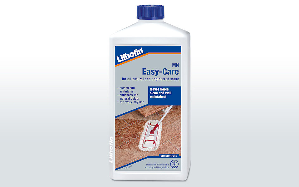 First carry out a basic cleaning with Lithofin MN Power-Clean. Regularly wipe the surface with a moist cloth in order to achieve a well maintained surface appearance. Always add one squirt of Lithofin MN Wash & Clean to the bucket of cleaning water to protect and maintain at once. After every fourth cleaning, touch the surface up with Lithofin MN Care-Sheen. Lithofin MN Care-Sheen protects and maintains sheen on all polished surfaces.