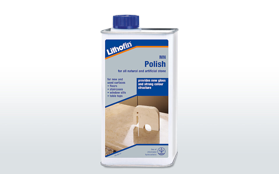 First carry out a basic cleaning with Lithofin MN Power-Clean. Regularly wipe the surface with a moist cloth in order to achieve a well maintained surface appearance. Always add one squirt of Lithofin MN Wash & Clean to the bucket of cleaning water to protect and maintain at once. After every fourth cleaning, touch the surface up with Lithofin MN Care-Sheen. Lithofin MN Care-Sheen protects and maintains sheen on all polished surfaces.