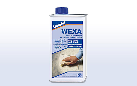 Pour faire partir les taches, on doit enlever la cire. Diluer Lithofin WEXA avec de l’eau 1:4 (tester la dilution adéquate sur un endroit discret) et appliquer sur la surface. Laisser agir entre 10 et 15 minutes. Brosser vigoureusement et rincer abondamment avec de l’eau. Laisser sécher la surface complètement. Appliquer Lithofin Cotto Classic Cire ou Lithofin Cotto Wax-Finish pour obtenir un résultat éclatant.