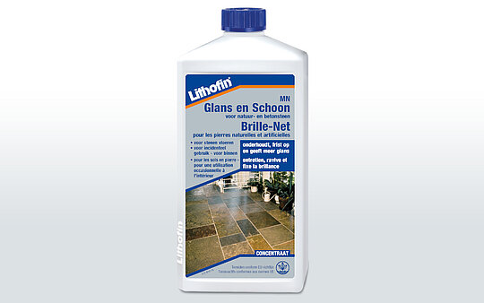 Premièrement, enlever toutes les taches et traces de détergeant avec Lithofin MN Multi-Nettoyant. Ensuite, recouvrir la surface avec Lithofin MN Brille-Net (Sur les endroits très abîmés, appliquer Lithofin MN Auto-Brilllant dilué avec de l’eau : 1 :4). Il est possible que vous ayez à répéter cette opération pour obtenir un brillant optimal. Utiliser Lithofin MN Wash & Clean pour l’entretien régulier.