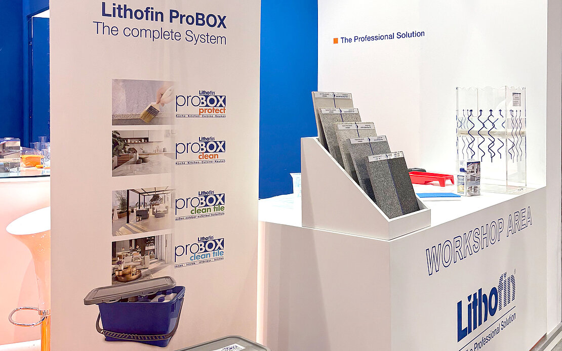 L'accent a été mis sur le système Lithofin de nettoyage, de protection et d'entretien qui, avec les quatre différentes Lithofin ProBox, offre la solution idéale pour chaque applicateur.