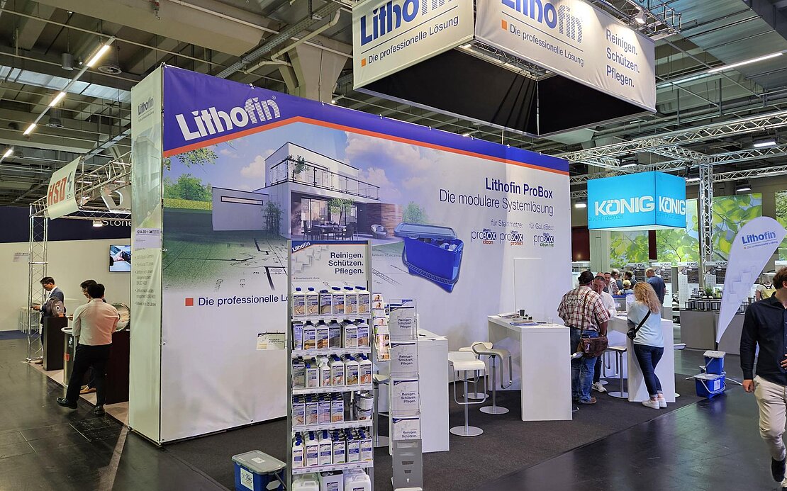 Pour Lithofin, c'était également l'occasion idéale de se présenter à des clients existants et potentiels et de mener des discussions intéressantes et des échanges personnels dans une atmosphère agréable. Sur le stand de Lithofin, tout tournait autour du nettoyage et de l'entretien corrects ainsi que des informations sur le traitement de protection optimal de la pierre naturelle, des blocs de béton, du terrazzo et bien plus encore. En outre, l'équipe a présenté le système innovant ProBox.