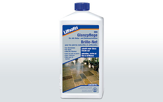 Premièrement, enlever toutes les taches et traces de détergeant avec Lithofin MN Multi-Nettoyant. Ensuite, recouvrir la surface avec Lithofin MN Brille-Net (Sur les endroits très abîmés, appliquer Lithofin MN Auto-Brilllant dilué avec de l’eau : 1 :4). Il est possible que vous ayez à répéter cette opération pour obtenir un brillant optimal. Utiliser Lithofin MN Wash & Clean pour l’entretien régulier.