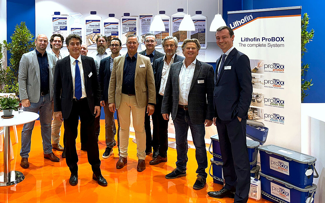 L'accent a été mis sur le système Lithofin de nettoyage, de protection et d'entretien qui, avec les quatre différentes Lithofin ProBox, offre la solution idéale pour chaque applicateur.