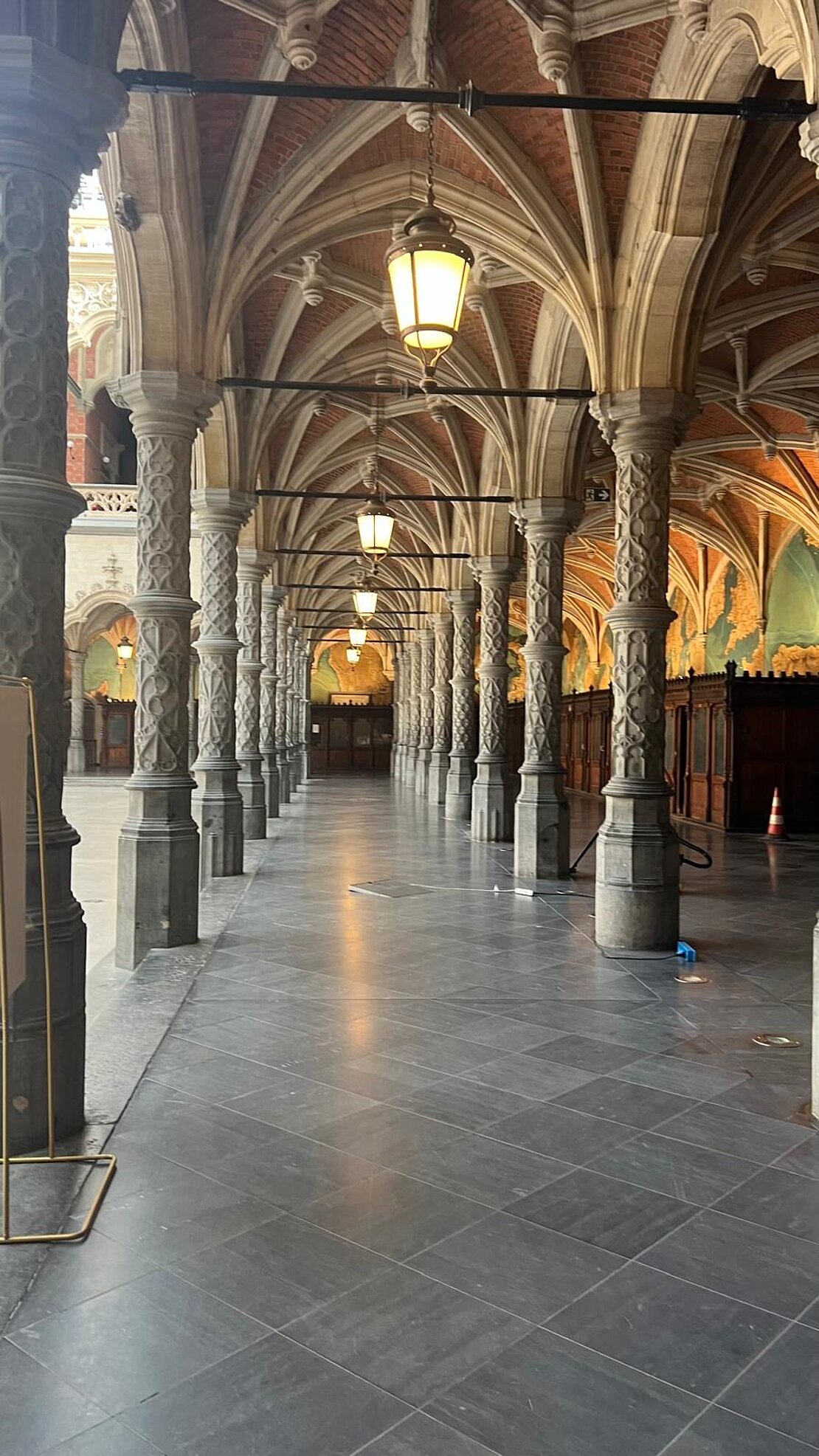 La restauration de certaines sections de la surface a commencé. Tout d’abord, un polissage mécanique est effectué sur le marbre et ensuite trois couches de Lithofin MN Polish Crème sont appliquées. Une fois les travaux complétés en 2011, plus de 2400m² auront été nettoyés et protégés de cette manière.