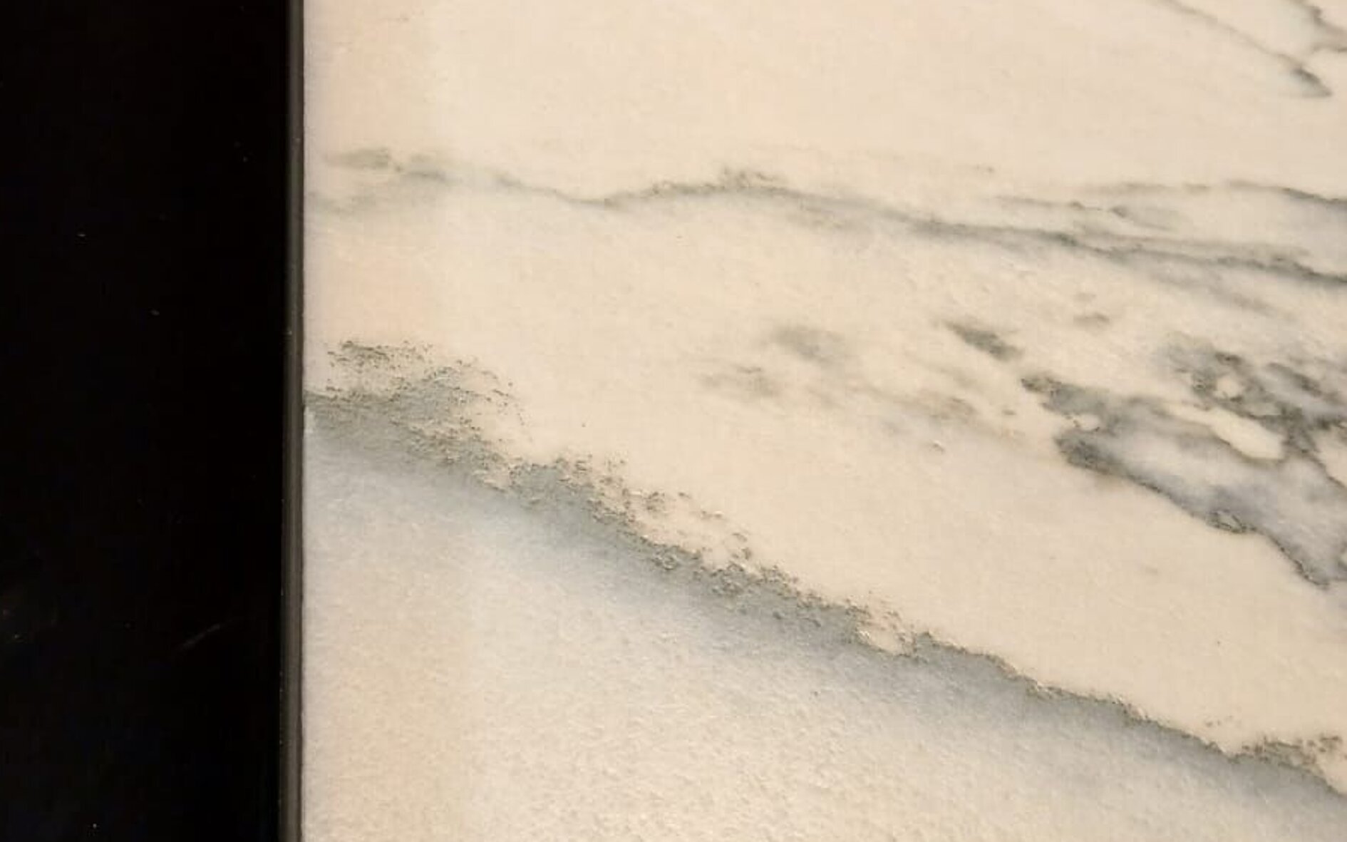 Afhankelijk van de penetratiegraad van het hars resulteert dit in een breed scala aan verdichtingen, van bijna volledig ondoordringbaar tot licht absorberend. Mechanisch bewerkte oppervlakken, zoals uitsparingen, randen of druipende oppervlakken, hebben echter de oorspronkelijke absorptie door het verwijderen van de met hars geïmpregneerde laag. Hoewel kwartsiet zeer dicht is, mag de capillaire activiteit van kwartsiet niet worden onderschat. Als deze open flanken onbeschermd blijven, kunnen oliën en vetten onder het met hars geïmpregneerde oppervlak dringen en verkleuring aan de randen veroorzaken, die om twee redenen niet meer kan worden verwijderd. Ten eerste de veroudering van het vuil en ten tweede het in de fabriek geharste oppervlak.