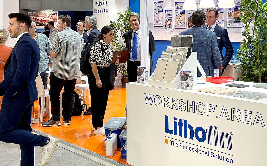 De focus lag op het Lithofin systeem voor reinigen, beschermen en onderhouden, dat met de vier verschillende Lithofin ProBoxen voor elke gebruiker de ideale oplossing biedt.