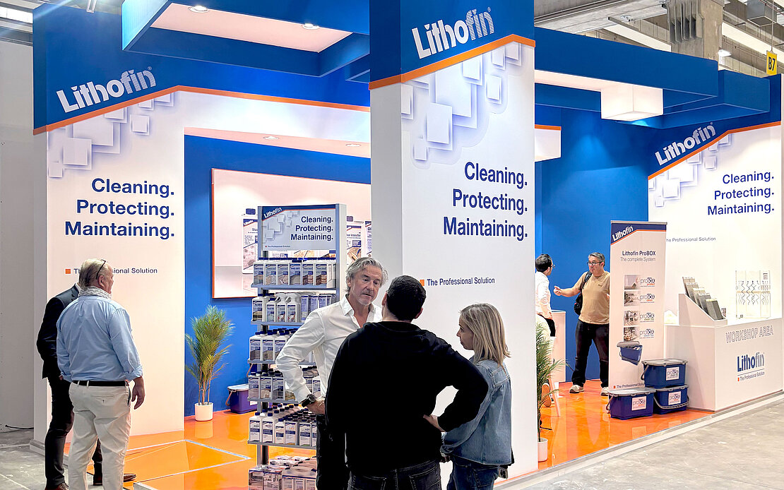 De focus lag op het Lithofin systeem voor reinigen, beschermen en onderhouden, dat met de vier verschillende Lithofin ProBoxen voor elke gebruiker de ideale oplossing biedt.