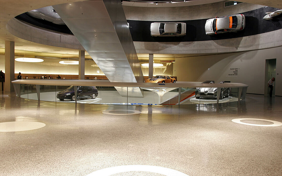 Een totaal van 2.000 m² van de tentoonstellingsruimte ,traphallen en de kantoorruimte zijn afgewerkt in Terraplan, een soort terrazzo. Lithofin MPP werd gebruikt om het oppervlak tot hoogglans te polijsten. De eindbehandeling met Lithofin MN Vlekstopmaakt het oppervlak olie- en wateratstotend en onderhoudsvriendelijk.
