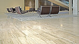 Als eerste behandeling werden kleverige resten verwijderd met Lithofin LÖSEFIX. Vervolgens werden resten van onderhoudsproducten snel en doeltreffend verwijderd met de alkalische speciaalreiniger Lithofin ASR.