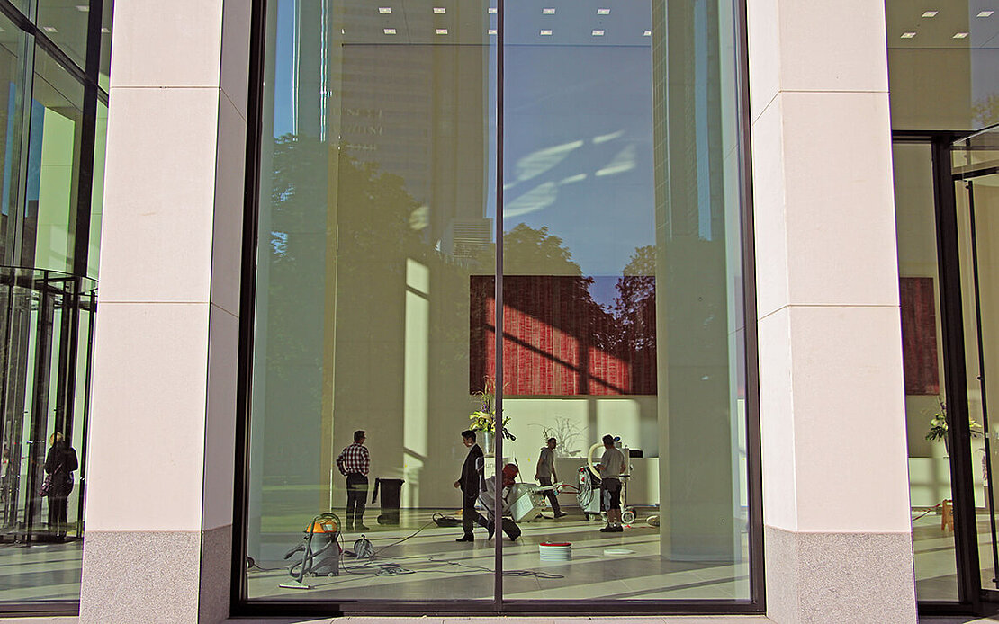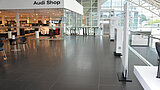 In de inkomhal en de ontvangsthal voor de wagens werd er 1.550m² geslepen Nero Assoluto gabbro gereinigd en behandeld met een impregnering. De dieptereiniging werd uitgevoerd met Lithofin ASR. De aansluitende beschermende behandeling met Lithofin Vlekstop PLUS maakte het oppervlak water- en oliewerend en versterkte tegelijkertijd de natuurlijke kleur en structuur van het natuursteenoppervlak.