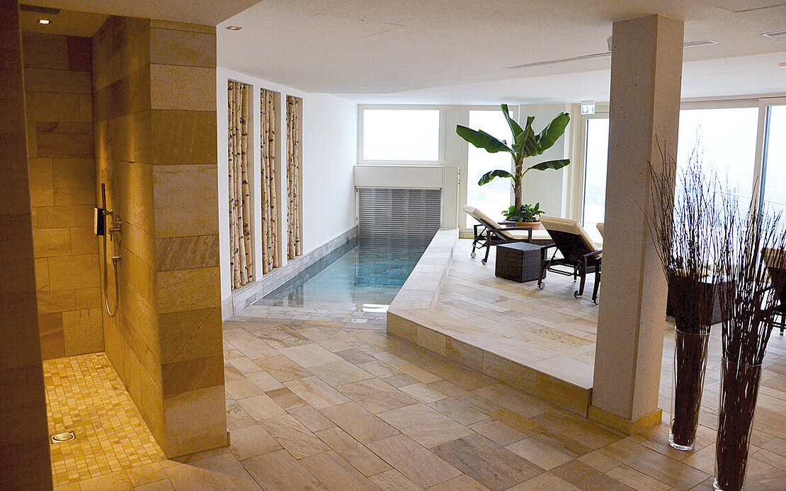 Gelegen op de zonnige flank van de zogenaamde Hausberg in Reutlingen biedt het Achalm Hotel & Restaurant een prachtig panorama van het Swabisch platteland. De inkm, ontbijtruimte, spa en zwembad zijn allemaal afgewerkt in ruwe kwartsiet. Badkamers en kleedkamers zijn uitgevoerd in Jura kalksteen en Nero Assoluto gabbro.