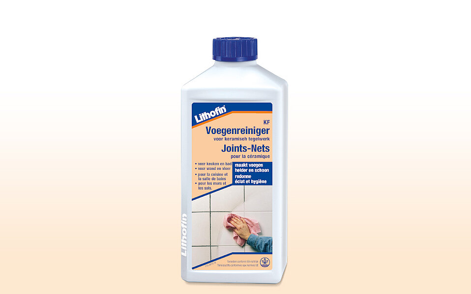Vetspatten en damp dringen in de poreuze voeg en maken de voeg geleidelijk donker en lelijk. Lithofin KF Voegenreiniger verwijdert dit vuil. Olie en vet verharden echter mettertijd en worden daardoor moeilijker verwijderbaar. Sterk vervuilde voegen kan men ook reinigen met Lithofin KF Intensiefreiniger. De schoongemaakte voegen moeten dan behandeld worden met Lithofin KF Voegenbescherming. Deze beschermende impregnering beschermt tegen het indringen van vet en vuil.