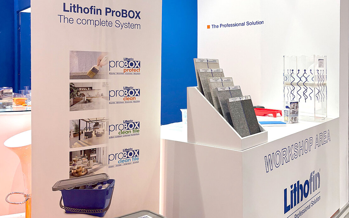 De focus lag op het Lithofin systeem voor reinigen, beschermen en onderhouden, dat met de vier verschillende Lithofin ProBoxen voor elke gebruiker de ideale oplossing biedt.
