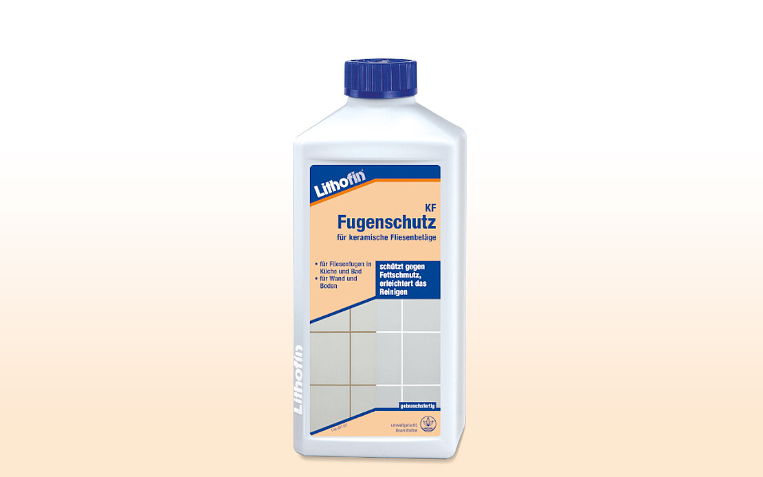 Vetspatten en damp dringen in de poreuze voeg en maken de voeg geleidelijk donker en lelijk. Lithofin KF Voegenreiniger verwijdert dit vuil. Olie en vet verharden echter mettertijd en worden daardoor moeilijker verwijderbaar. Sterk vervuilde voegen kan men ook reinigen met Lithofin KF Intensiefreiniger. De schoongemaakte voegen moeten dan behandeld worden met Lithofin KF Voegenbescherming. Deze beschermende impregnering beschermt tegen het indringen van vet en vuil.
