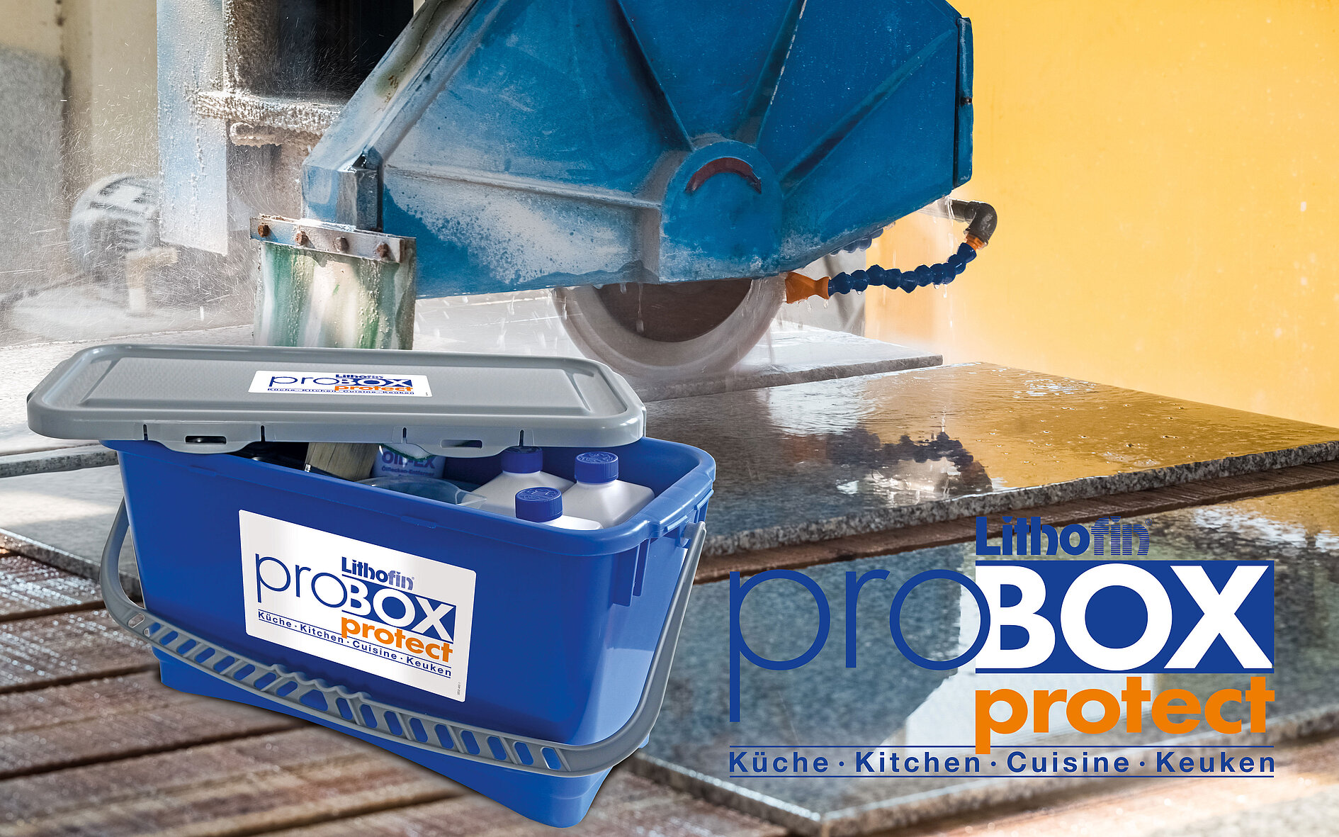 Met de Lithofin ProBox Protect (Keuken) beschikt de natuursteenverwerker over alle noodzakelijke producten en hulpmiddelen die nodig zijn voor het professioneel uitvoeren van fabrieksmatige impregneerwerkzaamheden op natuursteen, kwartscomposiet en keramiek.